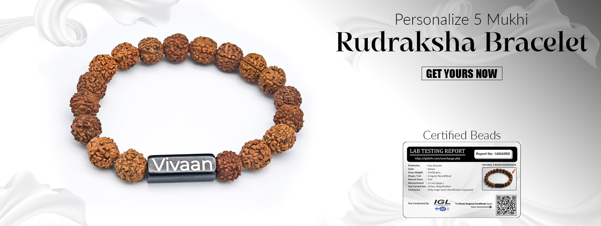 Natural 5 Mukhi Rudraksha Bracelet | Name Engraved | Lab Tested & Certified
