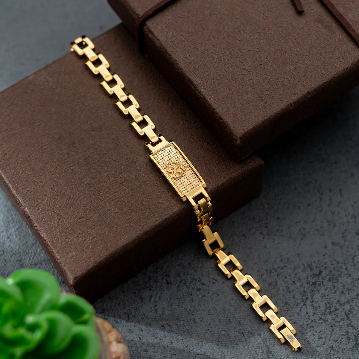 Premium gold-plated bracelet engraved with sacred Om, representing Lord Shiva. Spiritually energized through temple rituals and ready to wear daily.