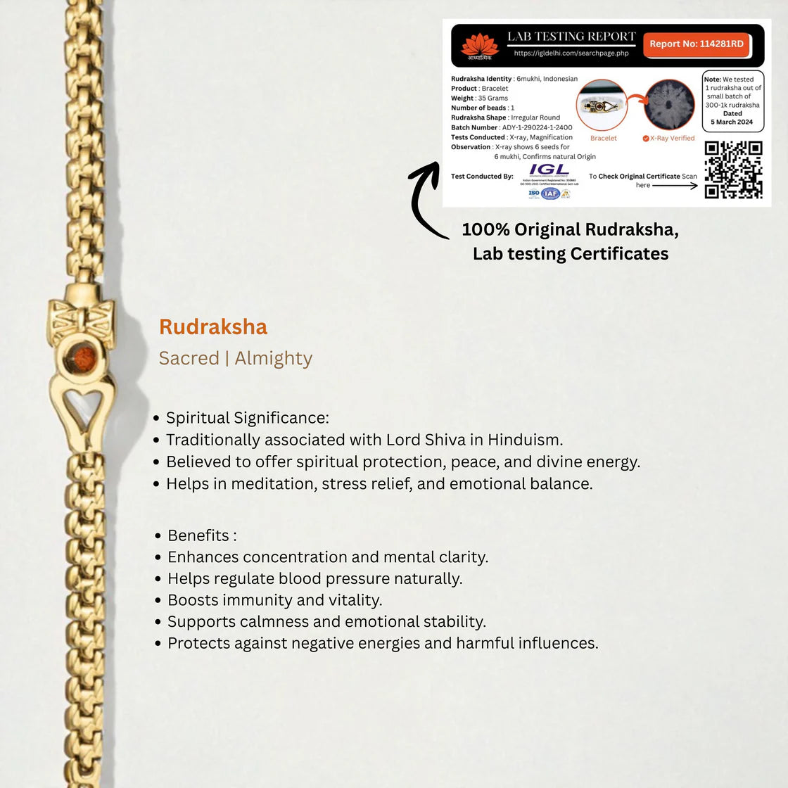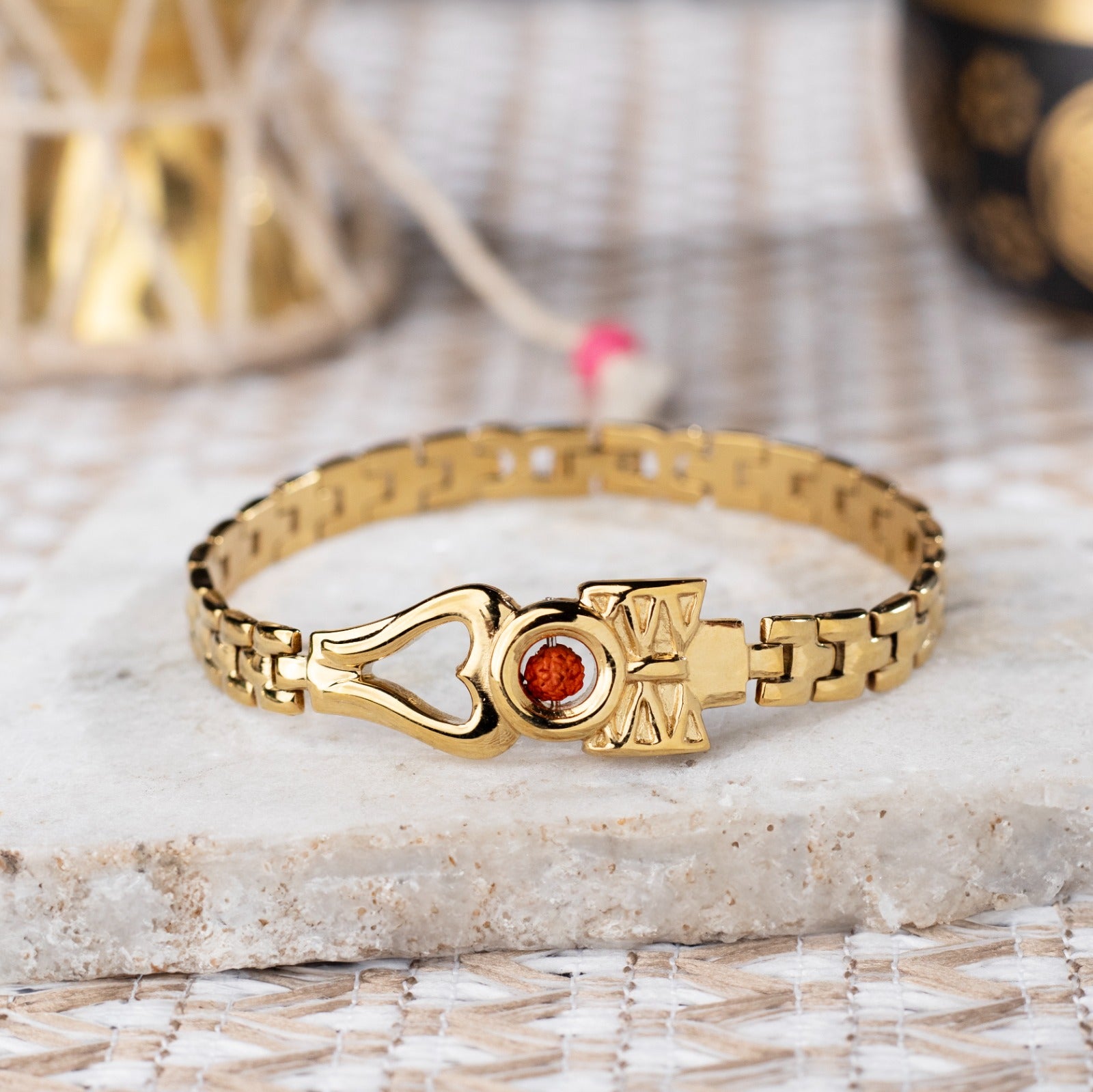 Gold-Plated Pure Brass, Adjustable Unisex Kada with Energized Rudraksha for Divine Blessings & Protection Rudraksha bracelet, inspired by Lord Shiva’s Damru & Trishul. Certified, temple-blessed, unisex, and spiritually powerful. Feel the energy of Lord Shiva...